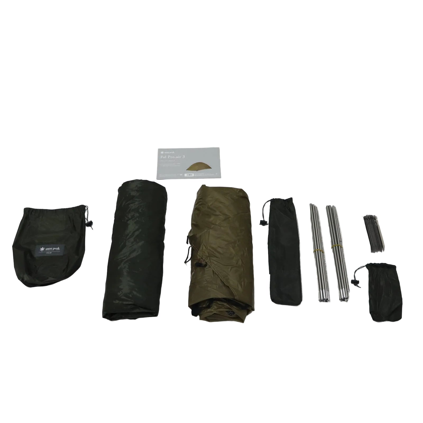 セット内容 フライシート・インナーテント・本体フレーム×2・ジュラルミンV字ペグ×11・自在付きロープ2.9m×4・リペアパイプ・本体ケース・フレームケース・ペグケース