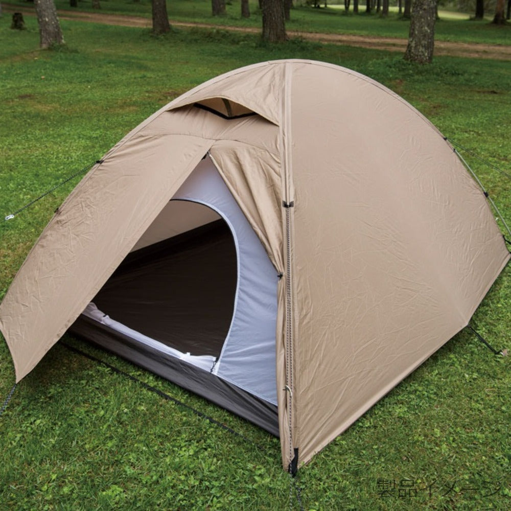 仕様 フライシート/20Dシリコンポリエステルミニリップストップ・PUコーティング耐水圧1,500mmミニマム、インナーテント/20Dポリエステルミニリップストップ(ウォール部)、30Dナイロンリップストップ・PUコーティング耐水圧1,500mmミニマム(ボトム部)、フレーム/A7001(Φ9mm)