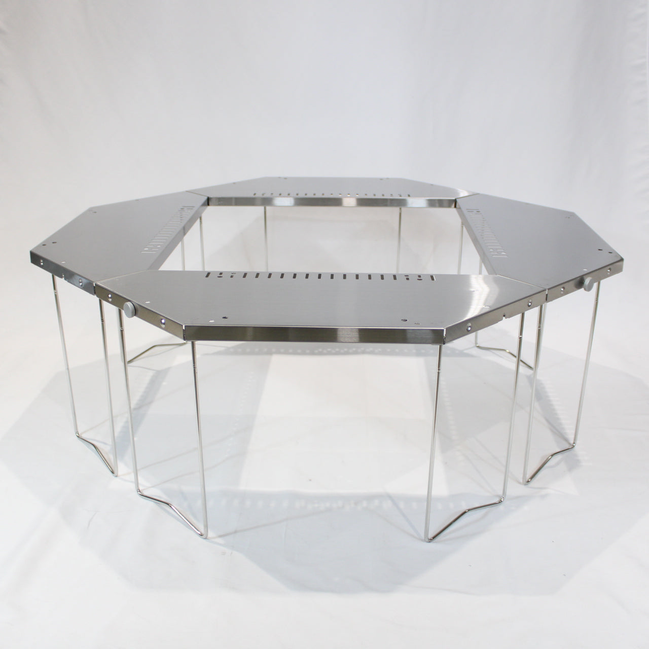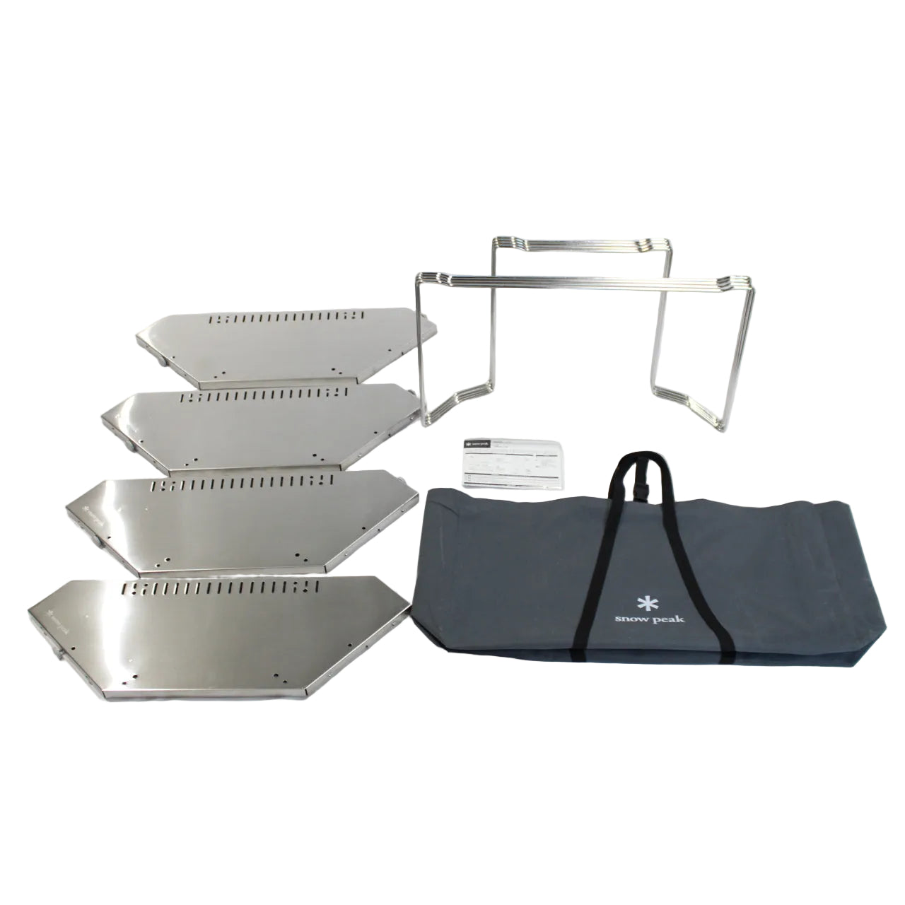 仕様 ● セット内容:本体、収納ケース● 材質:テーブルトップ/ステンレス、脚部/ステンレス、ツマミ/アルミニウム合金● 収納サイズ:745×170×400mm