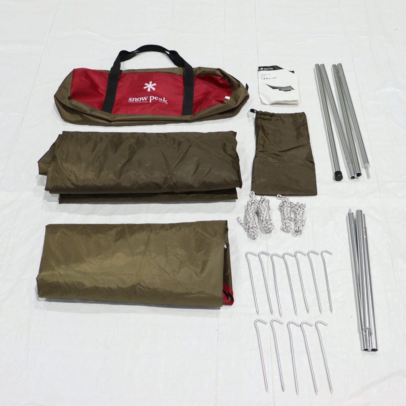 セット内容 フライシート自在付ロープ付(1m×2、0.4m×2)、インナーテント、アルミポール(210cm×1、120cm×1)、自在付ロープ(二又用9m×1、二又用5m×1、2.5m×5)、ジュラルミンペグ(21cm×12)、キャリーバッグ、ポールケース、ペグケース