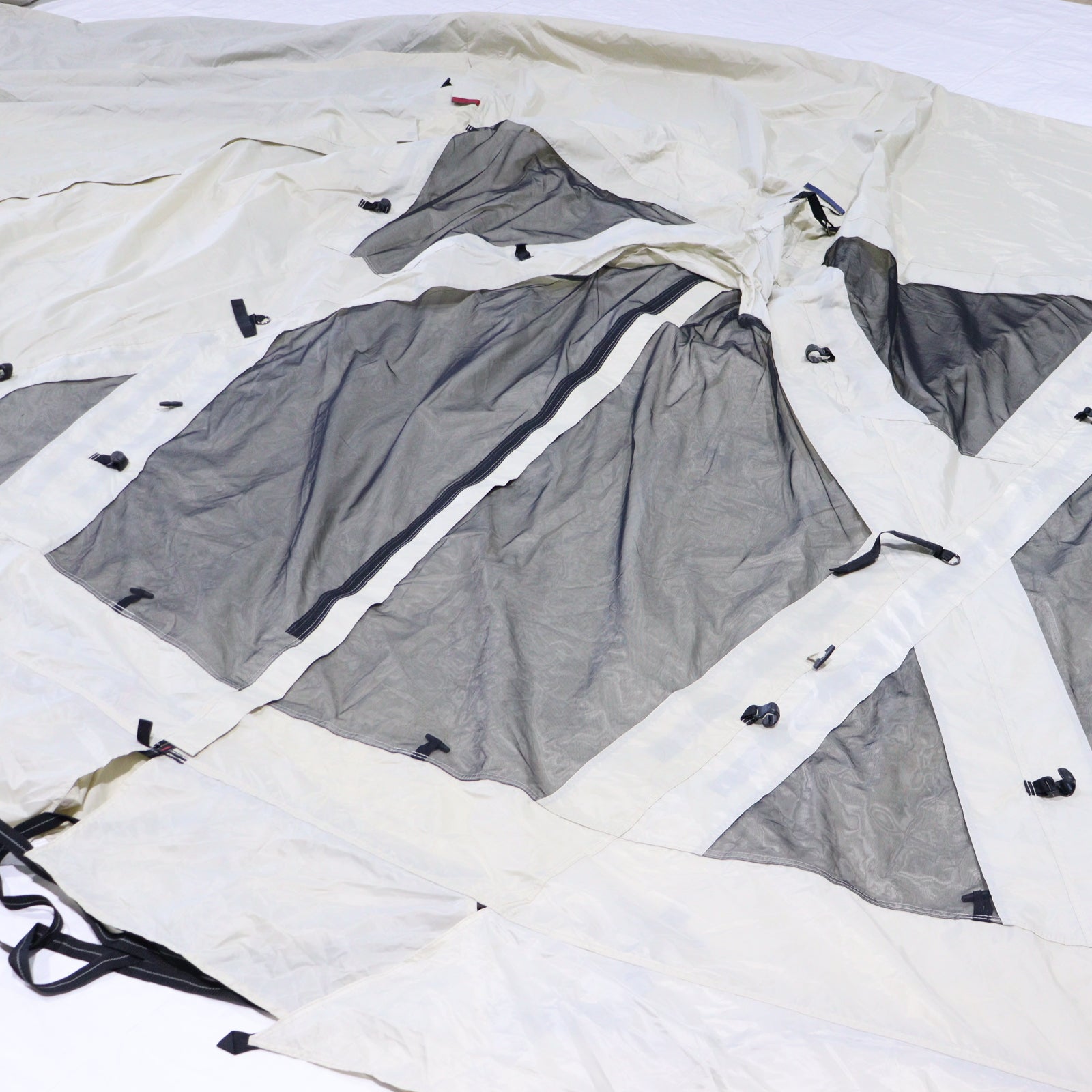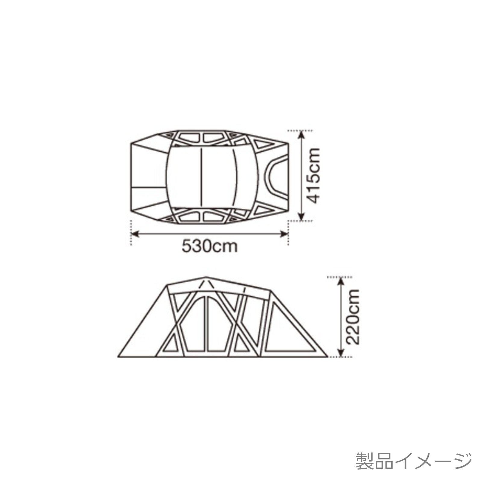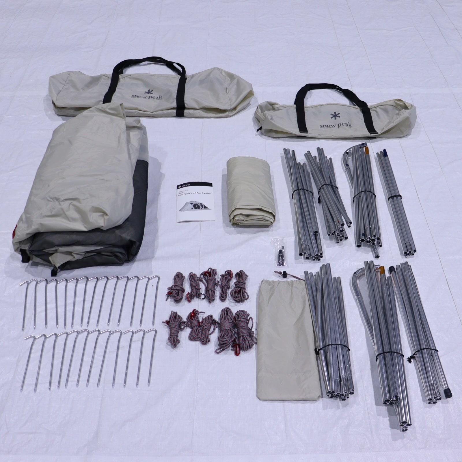 | セット内容 | 本体、ルーフシート、Aフレーム(×2)、リッジポール(×1)、Cフレーム(×2)、テントフレーム(×1)、アップライトポール(190cm×2)、ジュラルミンペグ(21cm×26)、自在付きロープ(二又用7m×2、3.5m×4、リング付2m×4)、シームグリップ剤、キャリーバッグ、フレームケース、ペグケース |
