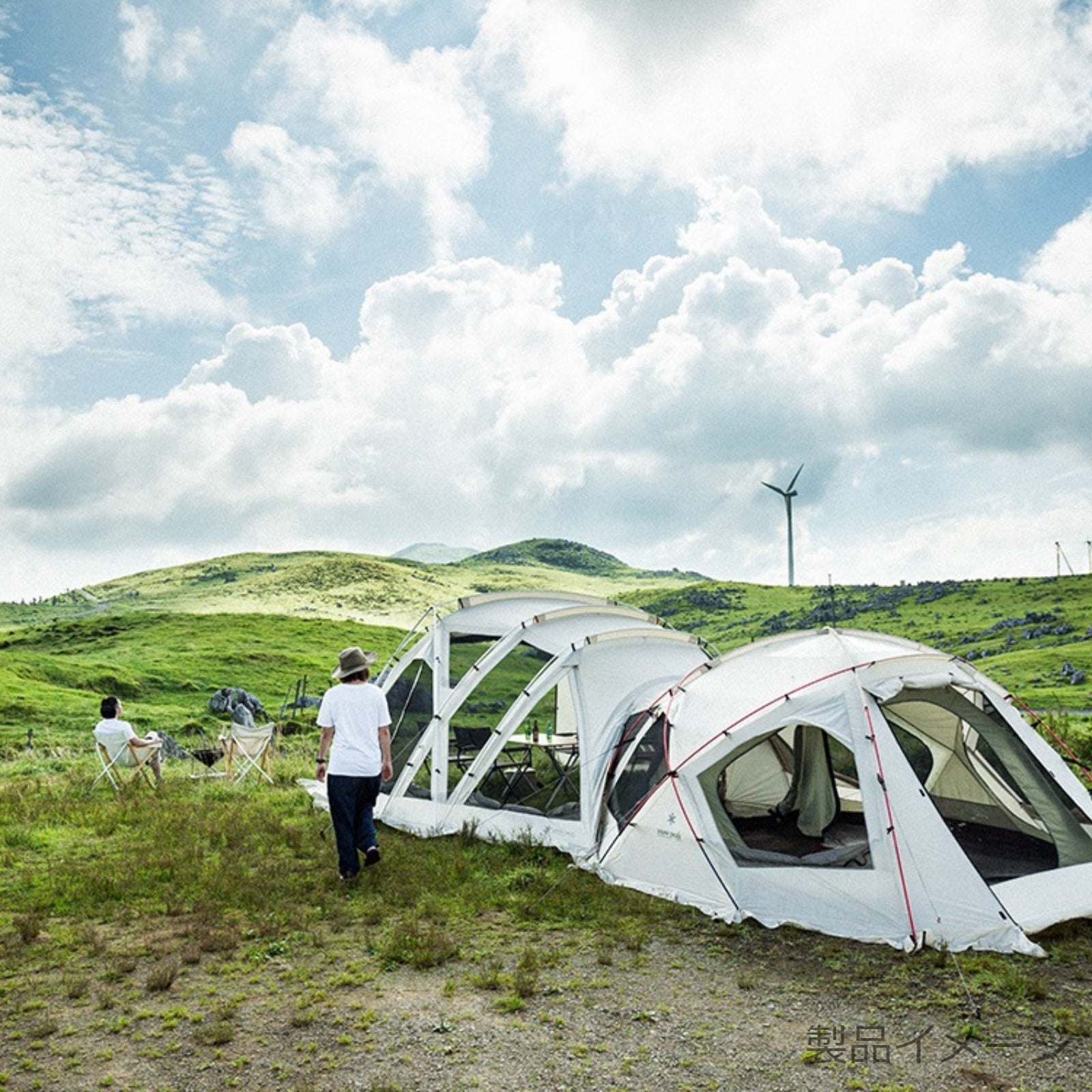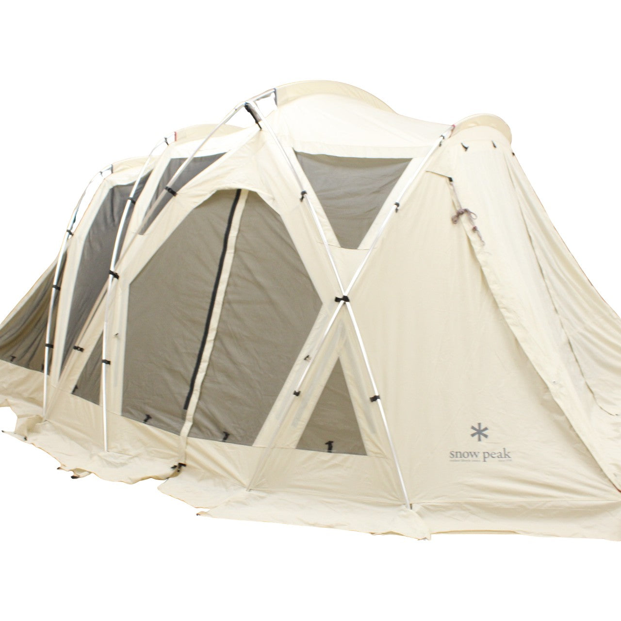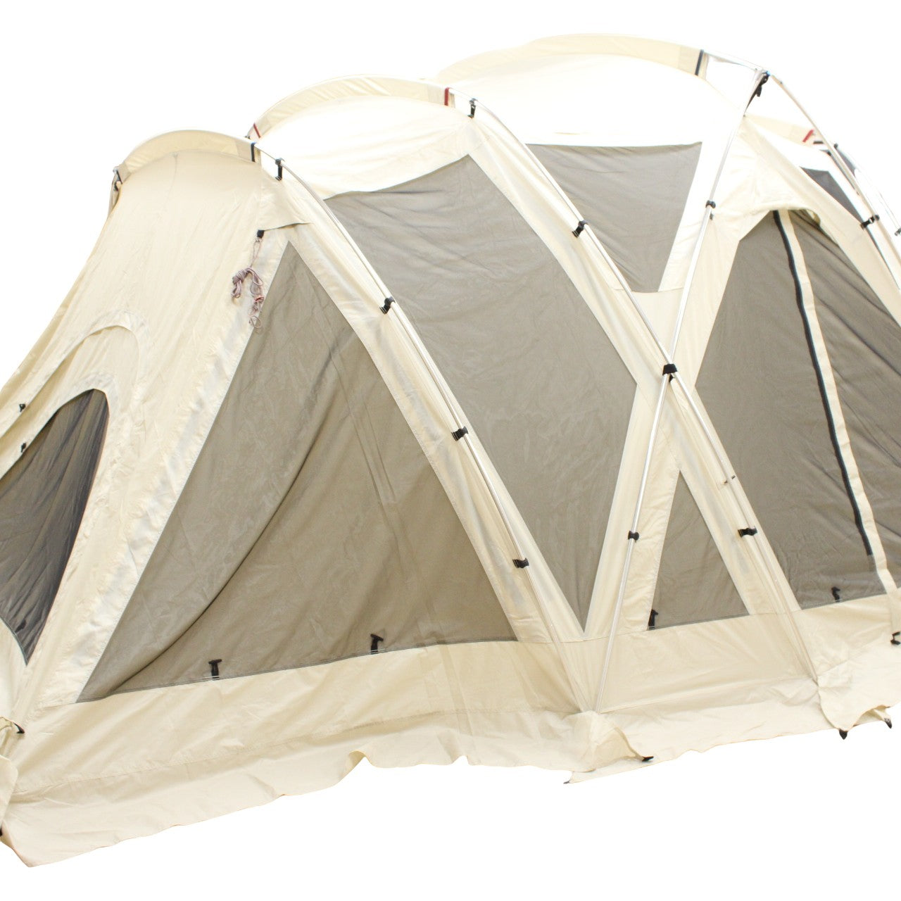 トンネルを介さずにテントとのドッキングも可能。アイボリーラインのタープやテントと合わせて使えば、自然と調和するグラマラスなキャンプシーンを演出します。