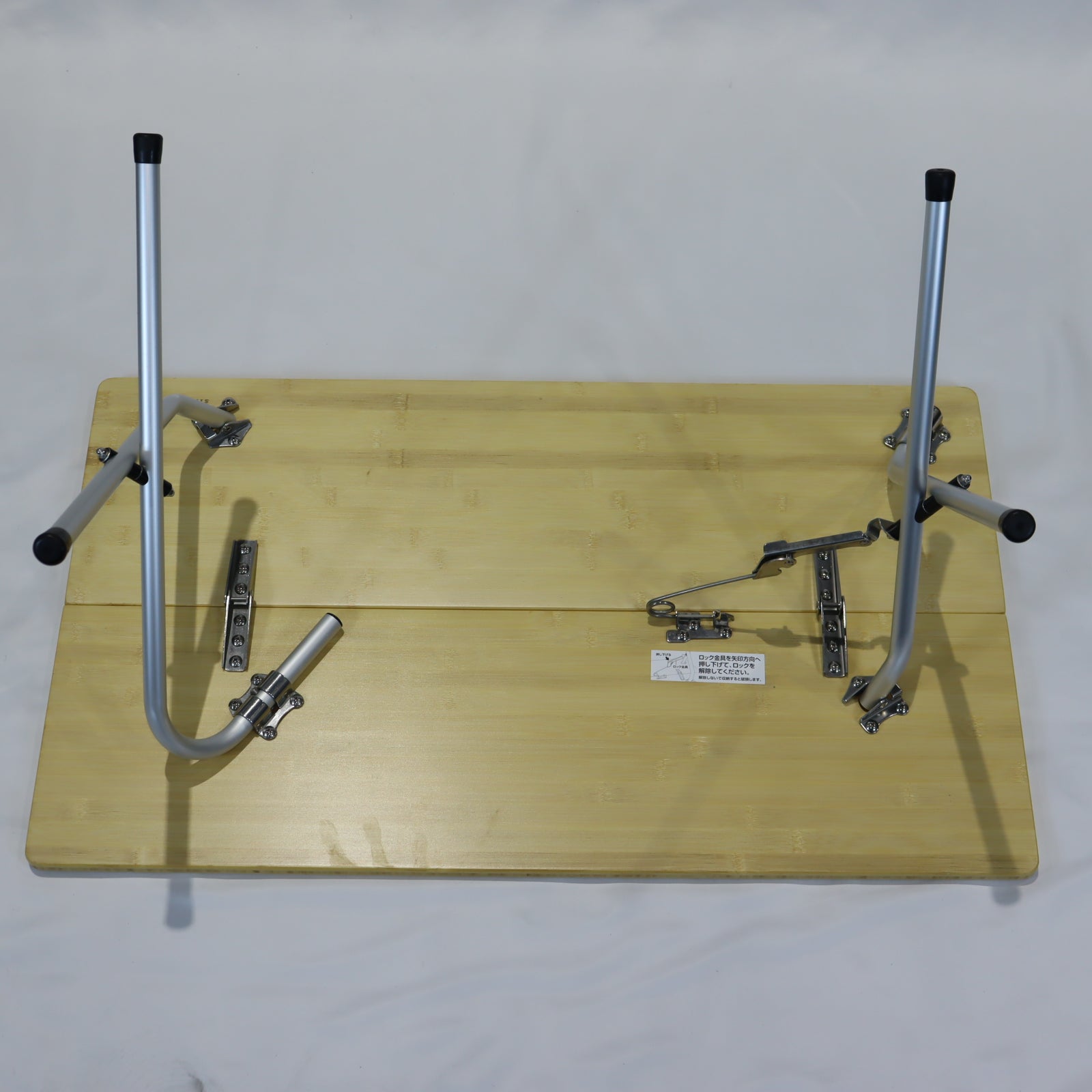 仕様 ● セット内容:本体、収納ケース ● 材質:天板/竹集成材、スタンド/アルミニウム合金(アルマイト加工)、ケース/ポリエステル ● 収納サイズ:248×846×50mm