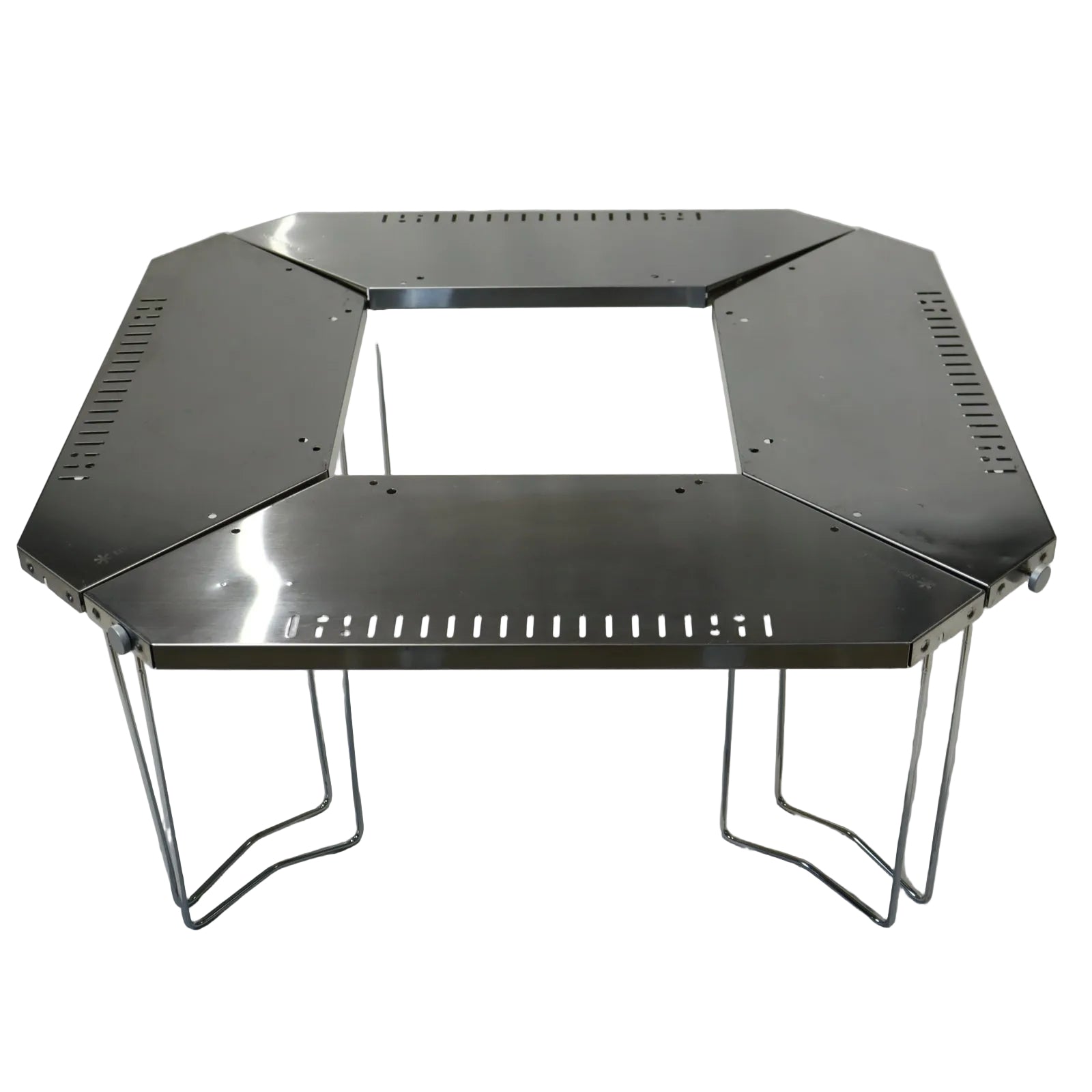 仕様 ● セット内容:本体、収納ケース● 材質:テーブルトップ/ステンレス、脚部/ステンレス、ツマミ/アルミニウム合金● 収納サイズ:745×170×400mm