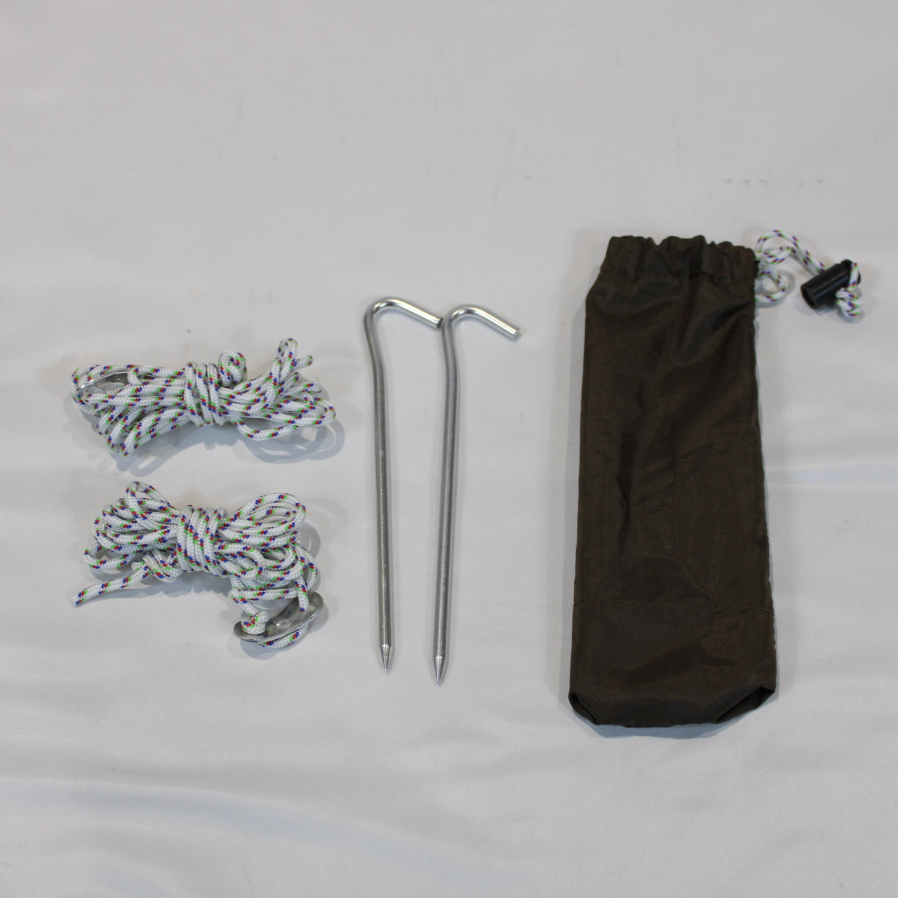 セット内容 アップライトポール150cm×2本、自在付きシングルロープ2.5m×2本、ジュラペグ17cm×2本、ポールケース、ペグケース