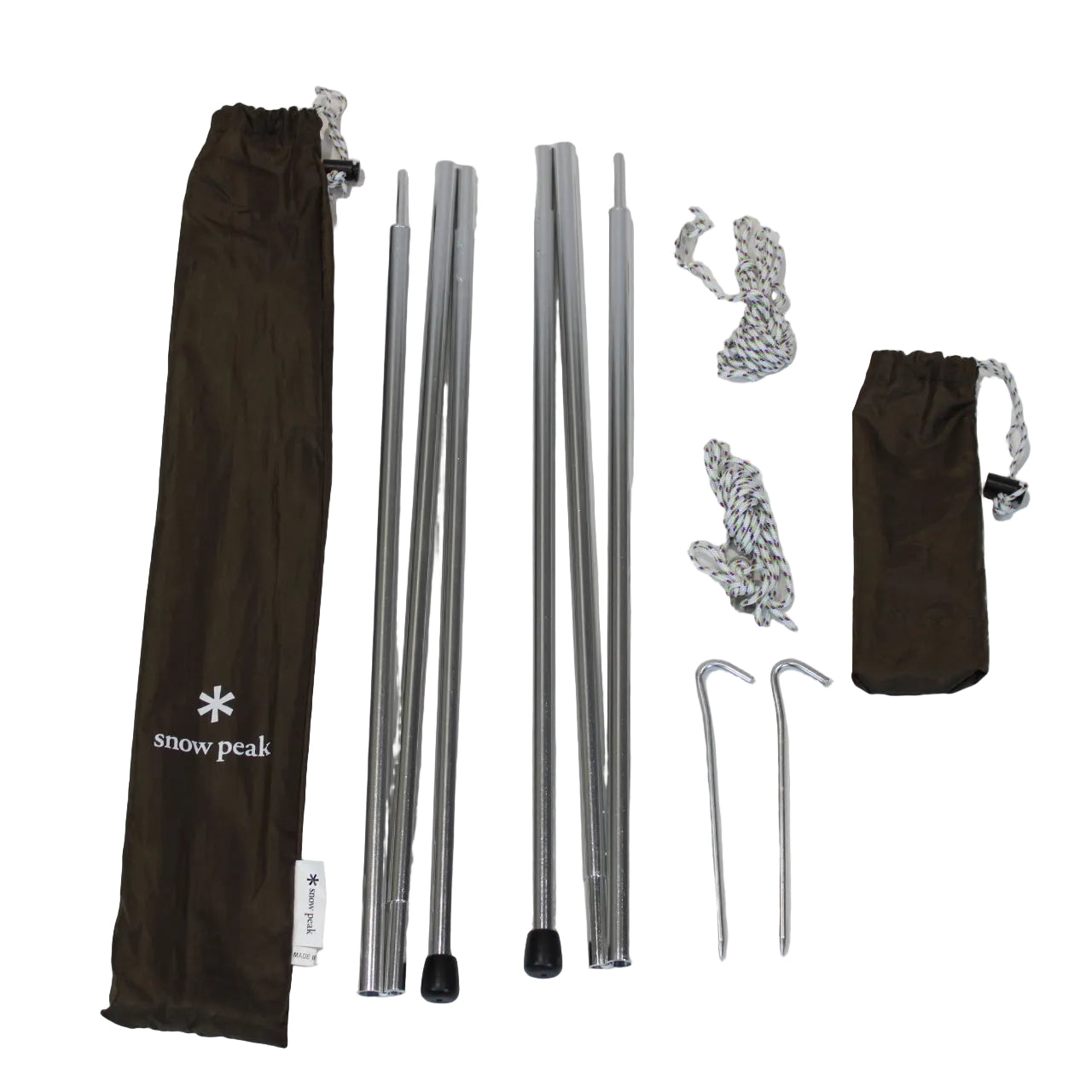 仕様 材質:ポール/A6061、ロープ/PP Φ3.5mm、ペグ/A7075