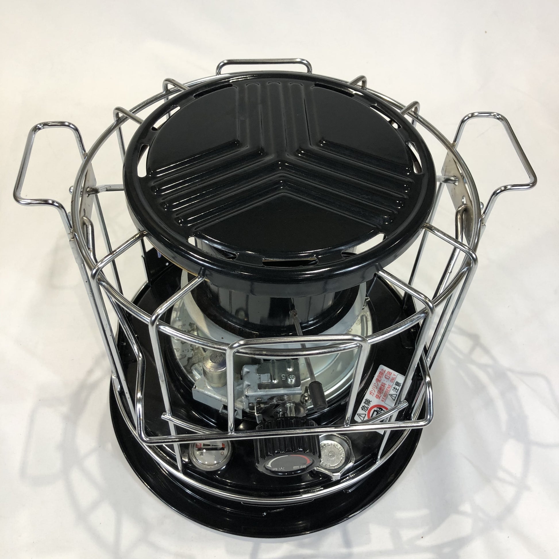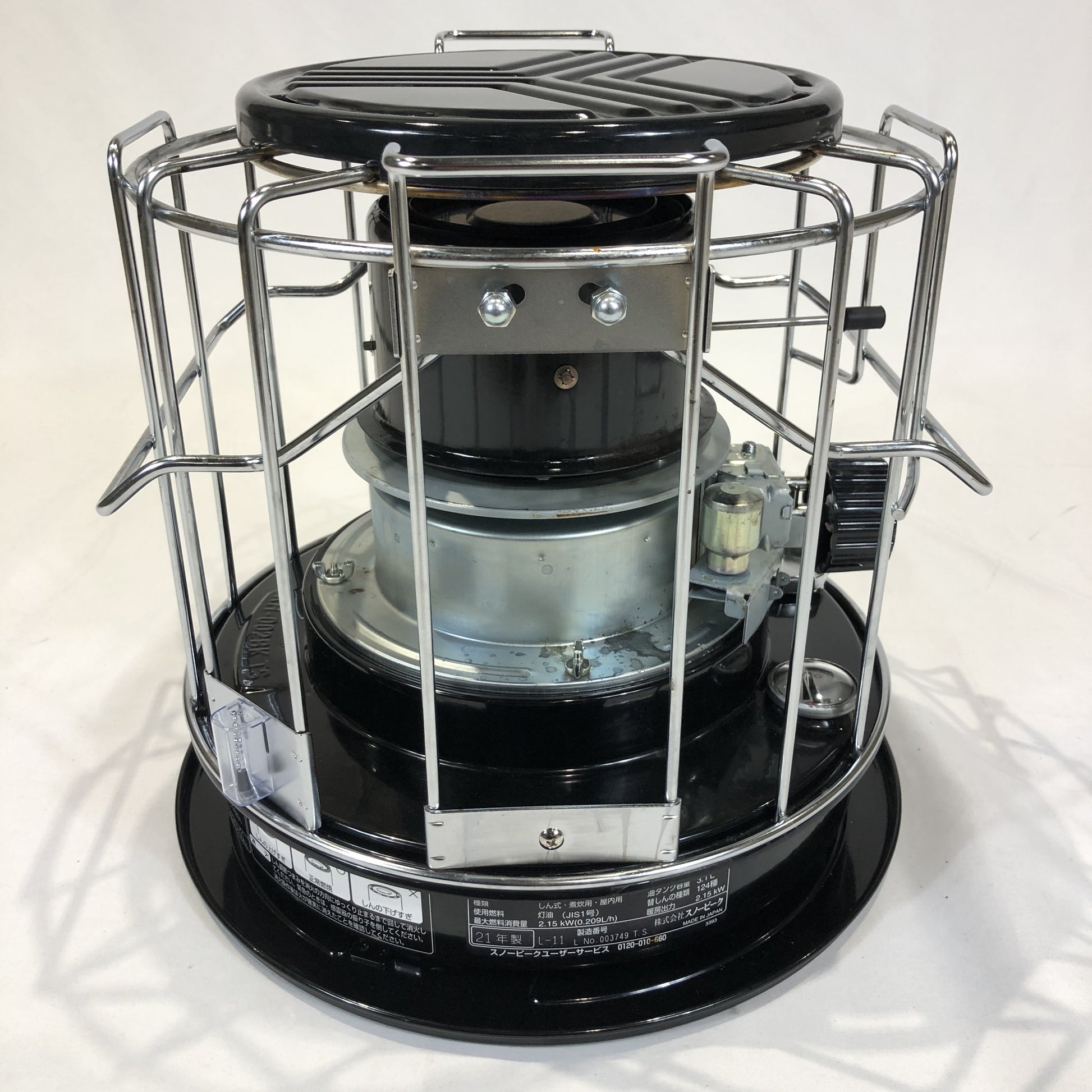 仕様 ● 種類:石油コンロ しん式・煮炊き用● 点火方式:点火棒(マッチ等)による● 使用燃料:灯油(JIS1号)● 出力:2.15kw(1800kcal/h相当)● 油タンク容量3.1L●燃焼継続時間:約15時間● しん(種類):普通筒しん●しん(呼び寸法):内径105mm 厚さ3.2mm 吸上量150%● 安全装置:対振自動消火装置(しん降下式)