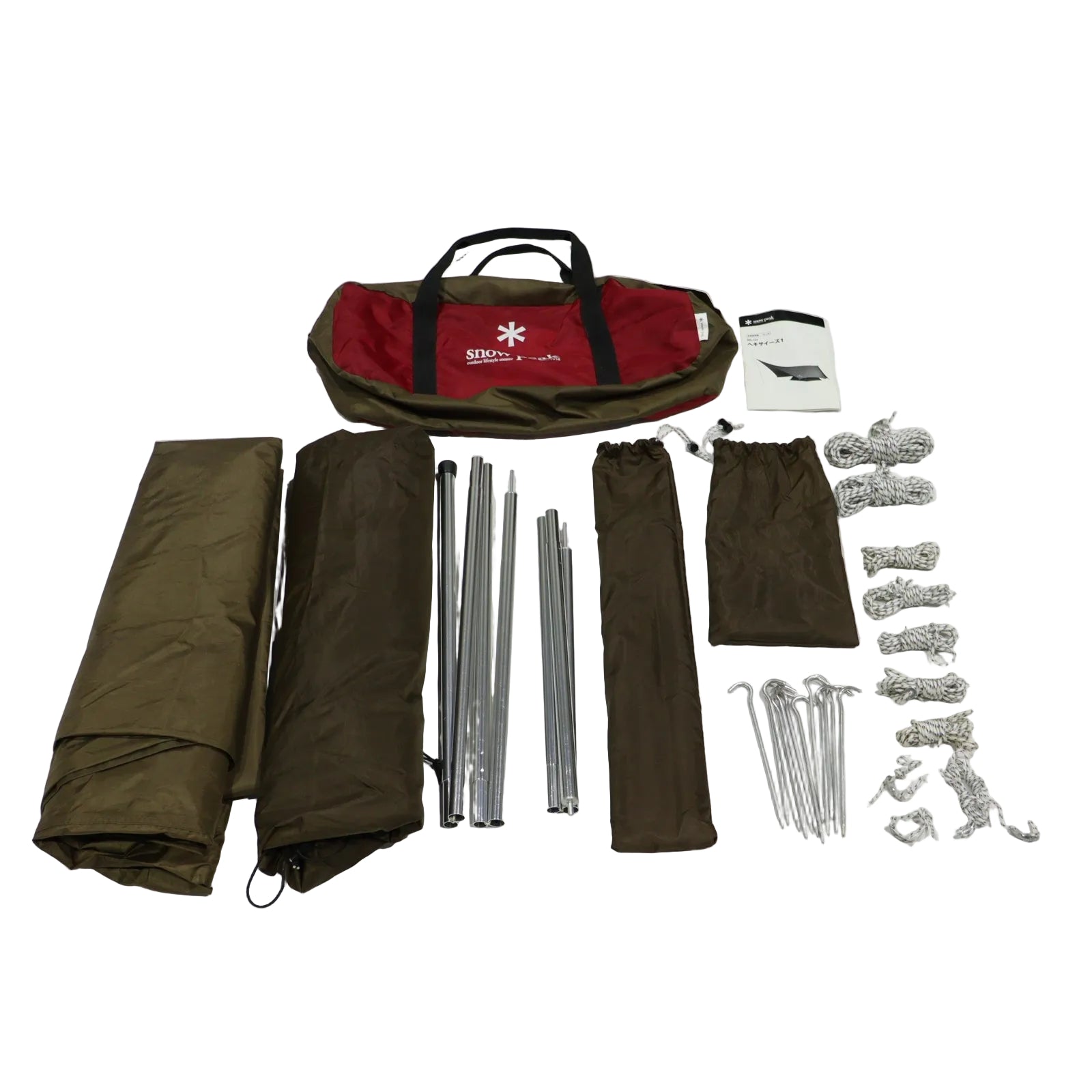 セット内容 フライシート自在付ロープ付(1m×2、0.4m×2)、インナーテント、アルミポール(210cm×1、120cm×1)、自在付ロープ(二又用9m×1、二又用5m×1、2.5m×5)、ジュラルミンペグ(21cm×12)、キャリーバッグ、ポールケース、ペグケース