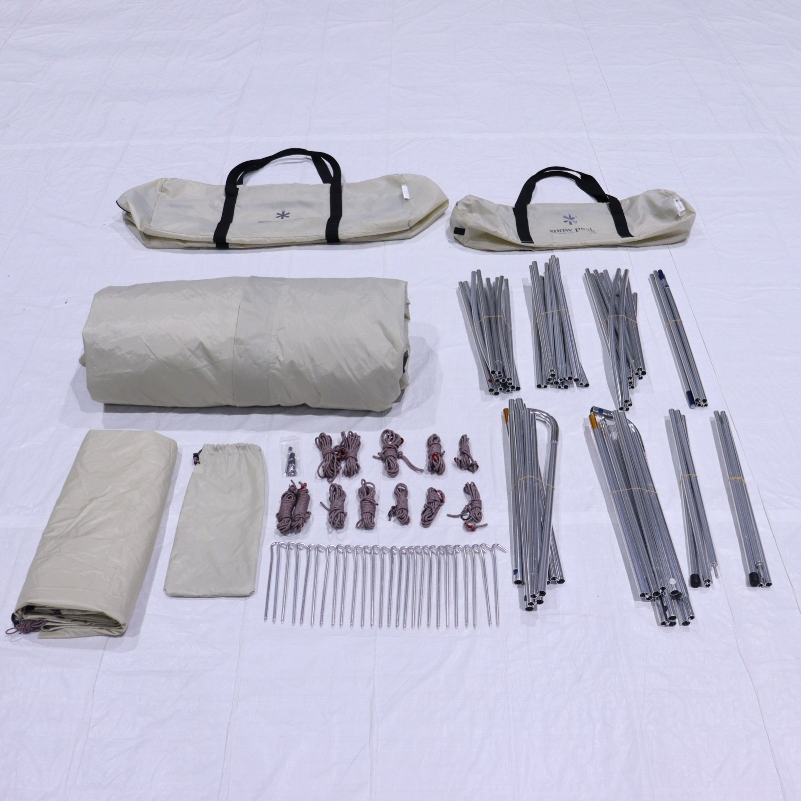 | セット内容 | 本体、ルーフシート、Aフレーム(×2)、リッジポール(×1)、Cフレーム(×2)、テントフレーム(×1)、アップライトポール(190cm×2)、ジュラルミンペグ(21cm×26)、自在付きロープ(二又用7m×2、3.5m×4、リング付2m×4)、シームグリップ剤、キャリーバッグ、フレームケース、ペグケース |