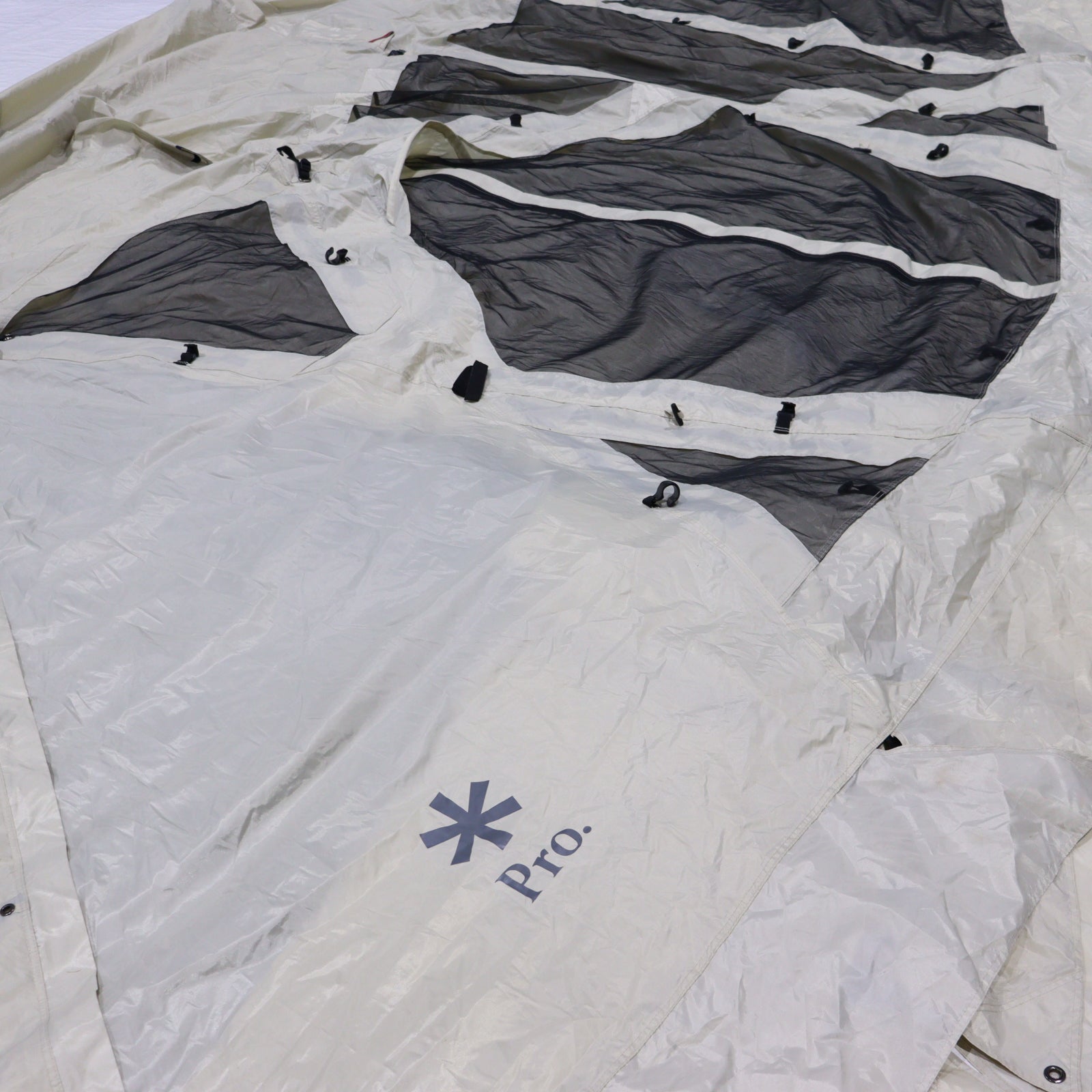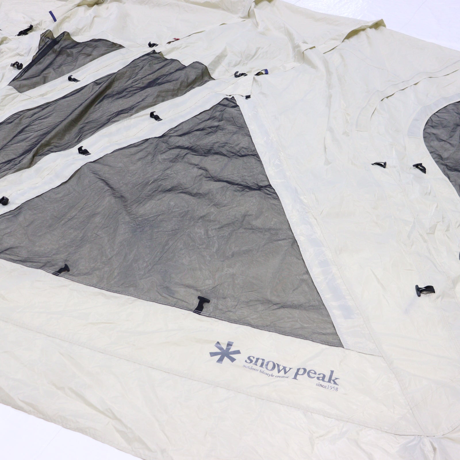 C:ダメージ中 軽度な使用感あり / 収納ケース一部に汚れあり / フロントパネルに共布接着補修箇所あり / フライ裏側に使用に伴う軽度な汚れあり / スカートに使用に伴う擦れ汚れあり / ルーフシートにシミ汚れあり / 2022年製 |